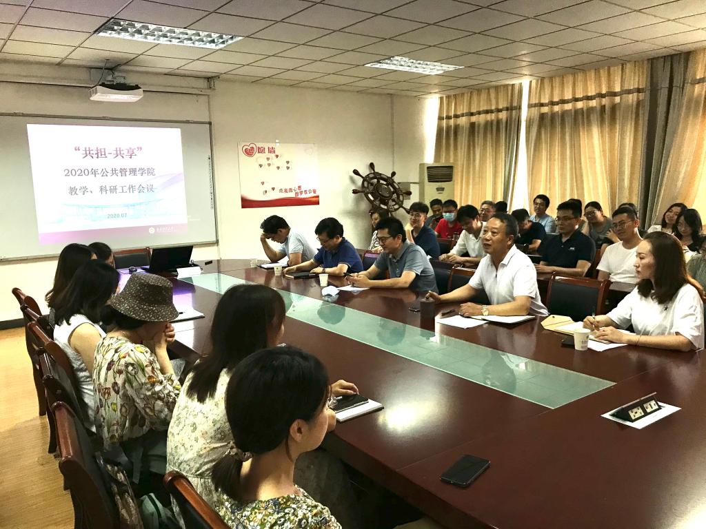 本次会议的主题是“共担·共享”。会上,李永乐副院长对学院教学工作现状进行了总结与分析。他指出,近两年,学院在严把教学规范方面成效明显,教学成果多有突破,专业建设初见起色。同时,教学工作也面临着成果分散、专业排名难突破、教学资源急需整合、团队建设亟待加强等问题。新形势下,学院教师务必以立德树人为宗旨,以“谋发展、凝特色、提影响”为目标,强化责任意识,推动学院教学管理与专业建设由“规范”向“发展”转变。