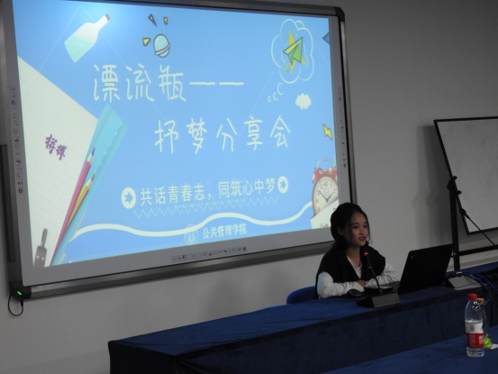 该活动分为三部分,第一部分是励志短片的播放如《不负此生》、《你有多努力才配拥有生活》。第二部分是优秀同学分享她们的学习、生活经验,帮助那些当下正处于迷茫状态的同学重拾信心,让他们勇于突破自我、大步向前;同时,也让刚进校园的大一学子能够以优秀的学长学姐为榜样,时刻激励自我,超越前者,做到更好,成为有理想,有抱负的南财人。第三部分是写下自己的目标,装进漂流瓶里保存起来,给自己一个奋斗目标,激励自己。