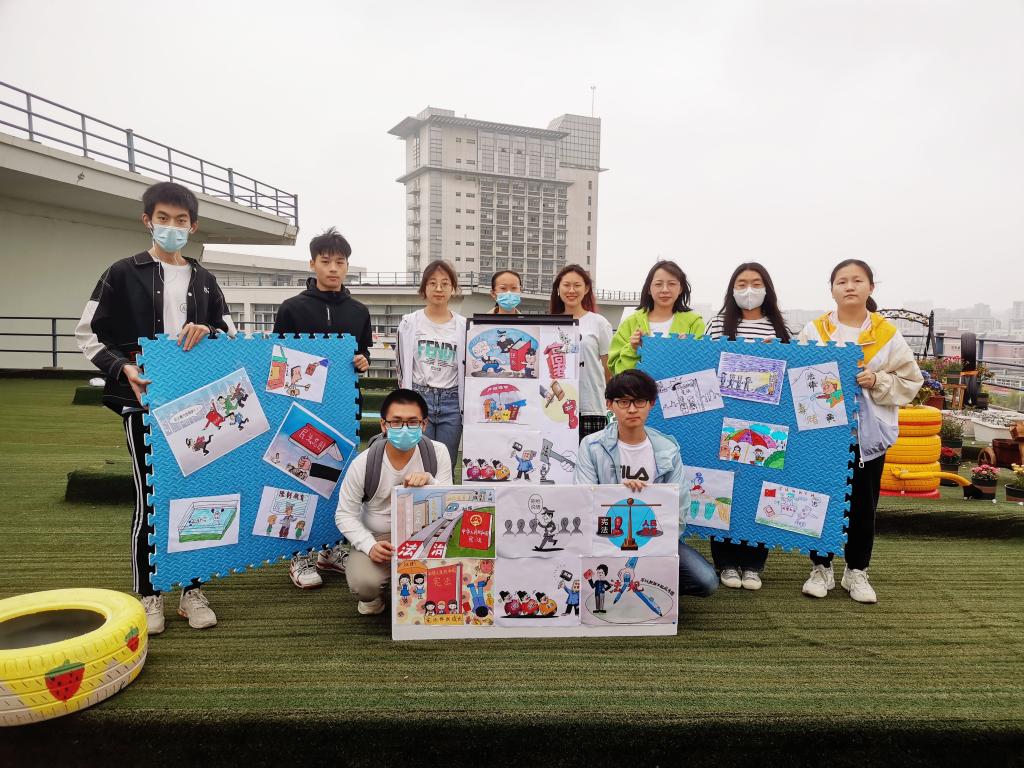 “‘知法、懂法、守法、用法’是新时代青年必须具备的品质。我们要加强法律知识的学习,学会用法律来维护自身权益,养成自觉守法的习惯。今天,我用七彩画笔描绘我心中的法治精神,明天,我将用法治精神描绘我的青春!”房地产2201班马瑞丽同学分享道。
