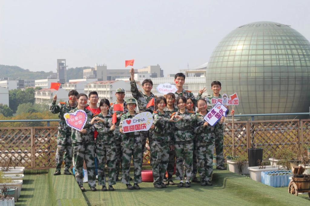 在精心装扮的学院耕读园一角,新生们挥舞着手摇国旗,举着祝福手牌,与国旗贴贴合照。新生们和国旗合照的大头贴拼凑成了偌大的“中国”两个字,表达对祖国的无限热爱。“中国”二字气势恢宏,彰显着中华人民共和国走过73年征程的强大力量;拼凑成“中国”二字的脸庞洋溢着青春的热情,预示着祖国欣欣向荣、蓬勃发展的光明未来。