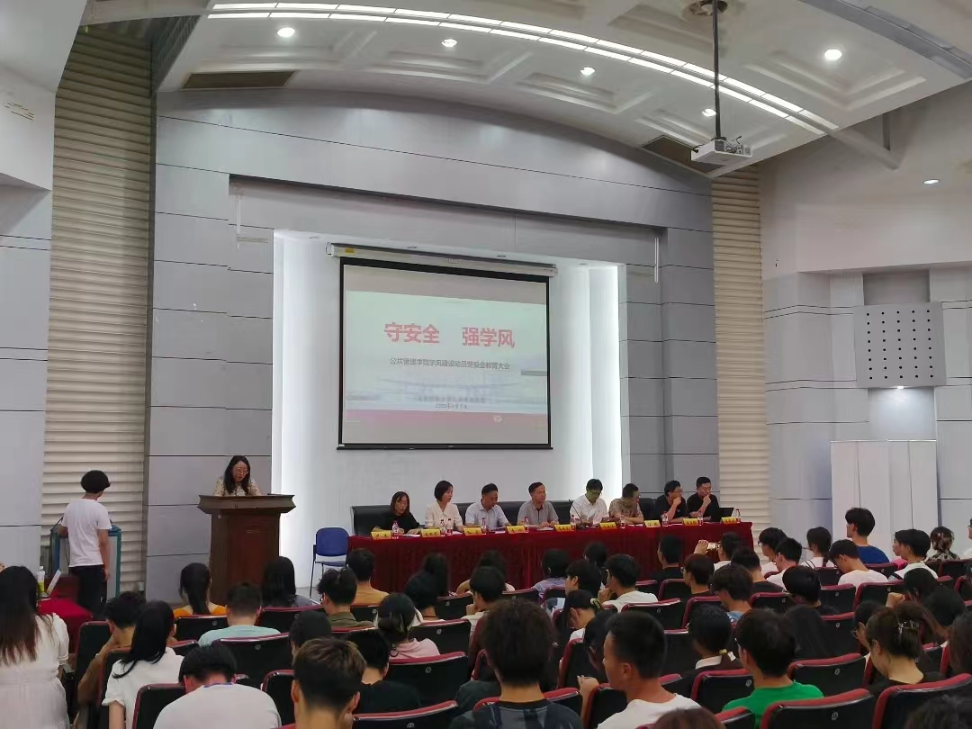 于德经楼报告厅召开了2023年学风建设暨暑期实践动员大会。出席本次会议的嘉宾有:院党委书记高晓东、院长黄建伟、院党委副书记孙启、副院长唐润、副院长汪栋、院长助理张丽芳、院公共事业管理系主任詹国辉、院房地产开发与管理系主任朱高立。全体辅导员、院20级、21级、22级本科生、研究生、MPA学生(线上)参加会议,会议由院学工办主任尹杰主持。
