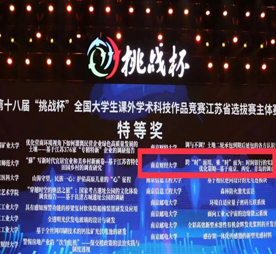 图:学院师生作品《跨“时”而用,乘“时”而为:时间银行的实践效果与优化策略——基于南京、西安、青岛的调查》荣获江苏省第十八届“挑战杯”全国大学生课外学术科技作品竞赛江苏省选拔赛决赛特等奖并入围全国决赛