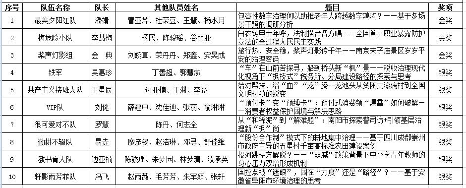 根据《第五届大乐透 公共管理案例“金选题”大赛通知》中的参赛要求及标准,大乐透 MPA教育中心请专家从参赛作品中评选出金奖3项、银奖7项,详见下面表格,若对此有异议请于2023年11月30日—2023年12月2日实名向巩世广老师反馈。