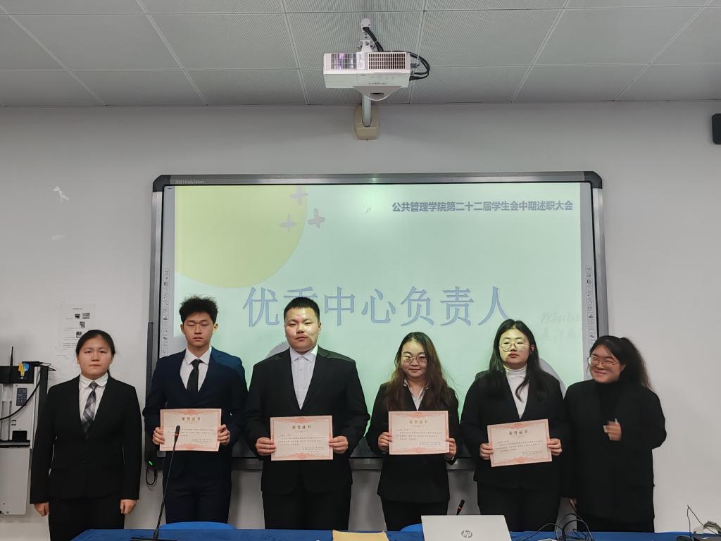 会议伊始,主持人介绍到场嘉宾。介绍完毕后,首先由四位主席团成员分别致辞,他们对本学期的工作做出总结报告,详细地讲述了本学期活动工作成果与反思。接着由主持人介绍本次述职大会的考核内容与考核流程。介绍完毕后,大乐透