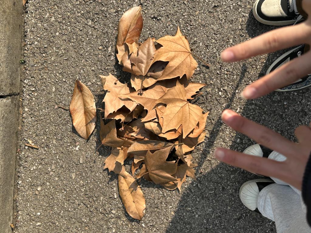 同学们拾起一片片枯叶,拼凑出一个个美丽的爱心,体会大自然的乐趣,感受眼前树木的魅力,亲近自然,投入实践,美化校园环境,倡导和谐文明的校园理念。走进草坪俯身低首,嗅满地草木香,观四处生灵长。翻卷的细长落叶书写硕大的林字,椭圆的樟树叶点缀成木花,一幅幅美丽的图画以丰富的形式呈现。学生们对草木的了解也逐渐深刻,以树木为契机,追寻那份对草木的爱护与自觉,增添环境保护意识,减少践踏草木等不文明行为。