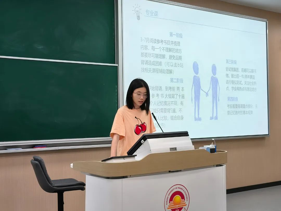 最后,学院邀请了公事管2001林昕、劳社保2001甘也竣枫、房地产2001程习涵三位优秀的同学进行经验分享。他们根据自身实际情况,为同学们分享了自己的“独家秘笈”,同学们听完后受益匪浅。