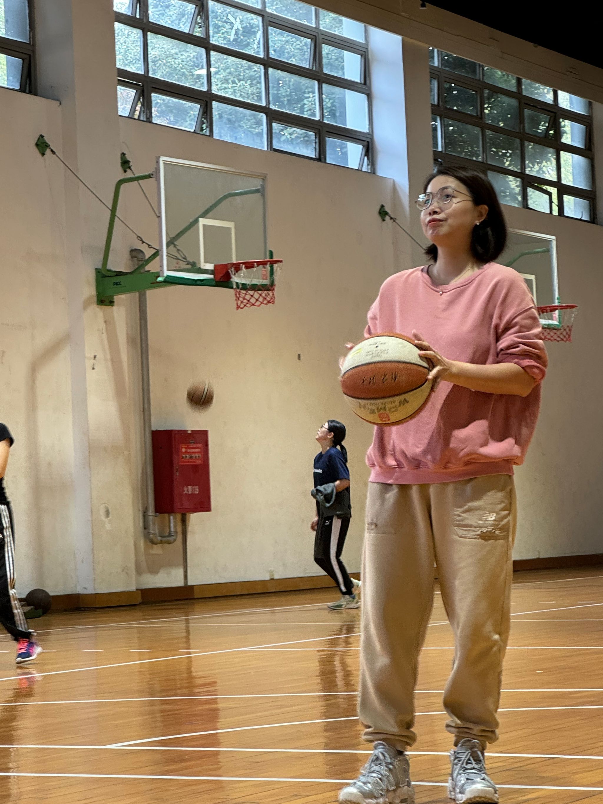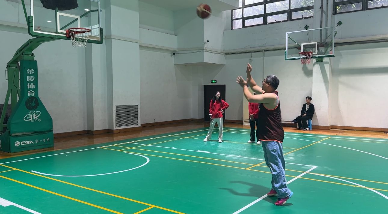李小燕老师和秦建国老师分别夺得女子定点投篮的第六名和男子定点投篮项目的第八名。一声哨响,老师们屏息凝神,目光专注地投向篮筐,以稳健的姿势投出每一颗球。篮球呈现出优美的抛物线后接连入筐,发出令人心悦的碰撞声。