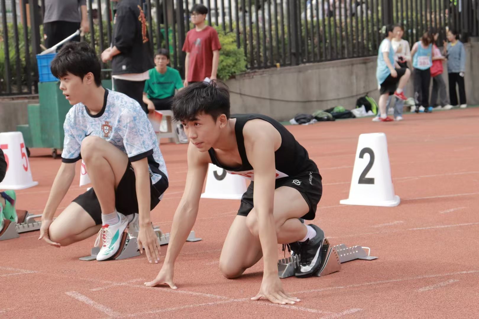 在男子短跑项目中,行管2402班马荣泽斩获100米预赛小组第一名以及决赛全校第四名。行管2401班刘磊斩获200米小组第一名。伴随着裁判一声枪响,选手们如同离弦之箭一般弹射起跑,与强大的空气阻力作对,奋力冲过终点线!