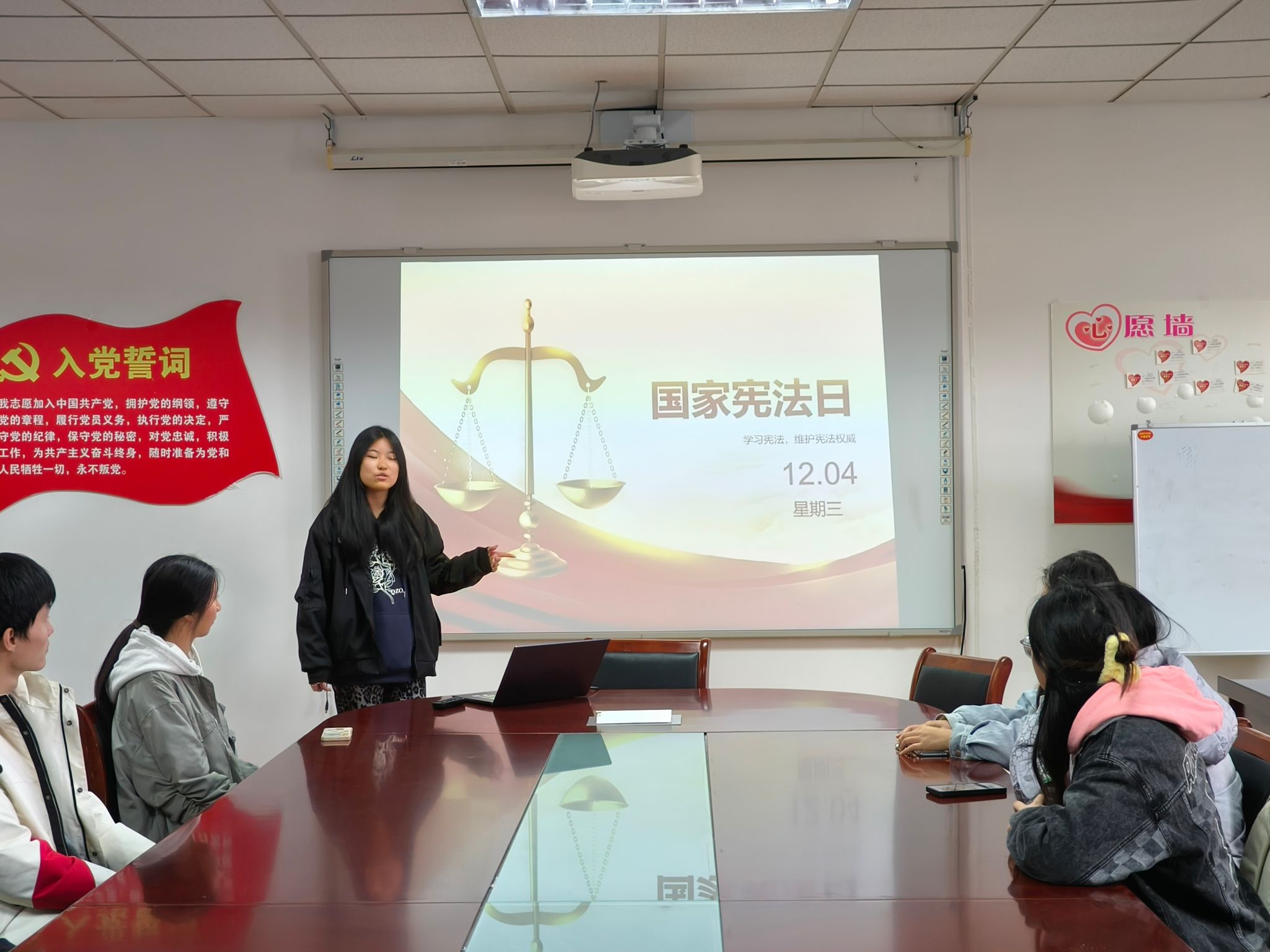 活动开始,主持人先介绍了相关的宪法知识,包括国家宪法日设定的时间及意义、宪法的地位和内容、宪法与我们的关系,讲解由浅入深,多引用我们身边的例子,把讲解内容与我们的生活实践融合,让同学们对宪法有了全面的了解,对宪法的认可与敬畏也油然而生。