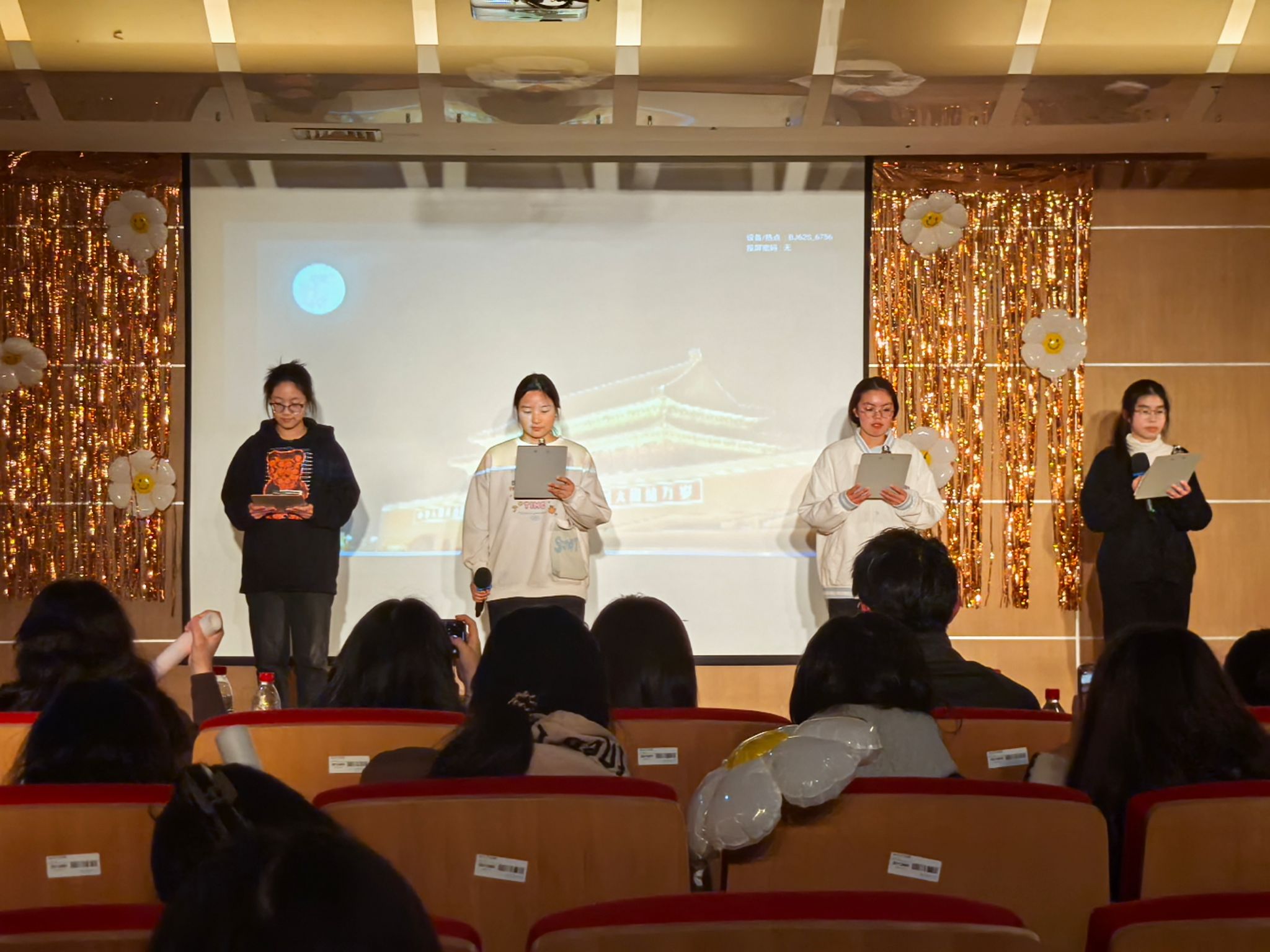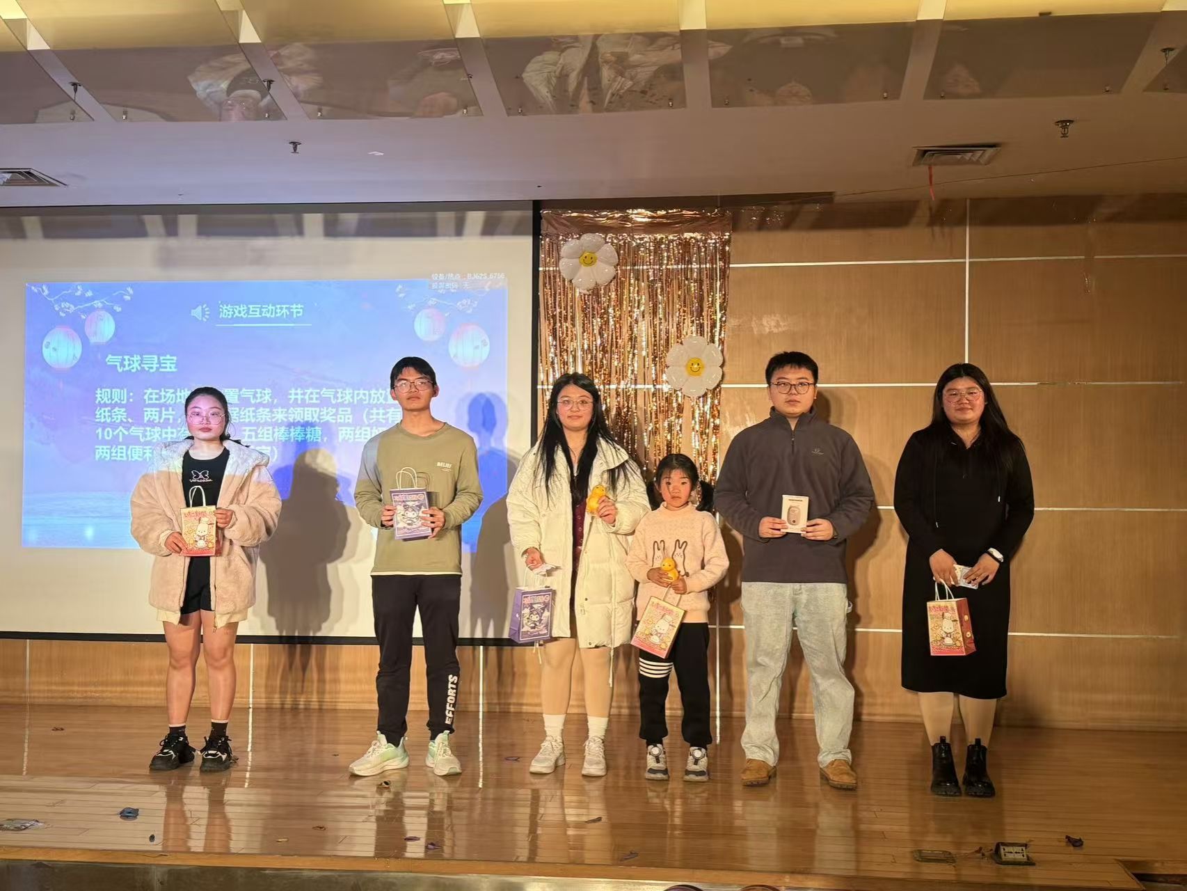 为了增加活动的趣味性,晚会设置了“气球寻宝”和猜灯谜两个游戏互动的环节,同时准备了小礼品来激发参与者的热情。同学们纷纷积极地参与其中,现场气氛欢乐融融。