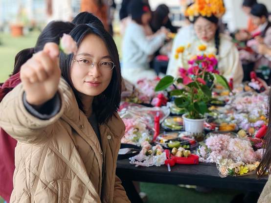 手工簪花完成后,老师们在同学的引导下,穿上汉服,分享制作过程中的乐趣与感悟。最后,大家合影留念,为这次难忘的活动画上了圆满的句号。