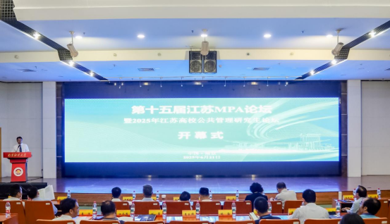 、MPA教育中心和江苏现代财税治理研究院承办的第十五届江苏MPA论坛暨2025年江苏高校公共管理研究生论坛在我校仙林校区召开。副校长张炳,国务院学位委员会公共管理学科评议组成员、集美大学党委常委、副校长黄新华,全国MPA教指委委员、江苏省公共管理学科联盟理事长孔繁斌,国务院学位委员会公共管理学科评议组成员、四川大学城市治理研究院院长姜晓萍,全国MPA教指委委员、南开大学周恩来政府管理学院院长吴晓林,江苏MPA联谊会代表、江苏凤凰出版传媒集团组织部部长黄煦,江苏省公共管理学科联盟秘书长、江苏大学教授周绿林,江苏省民政厅党组成员、副厅长林莉作为江苏省优秀MPA毕业生代表出席论坛。来自全省二十多所MPA学位点高校的师生代表及知名专家学者参加论坛。