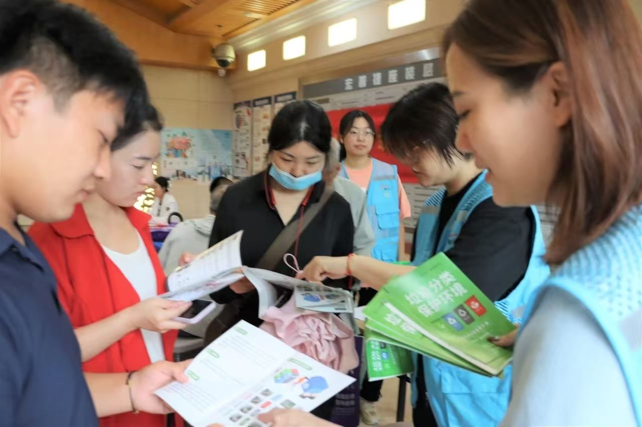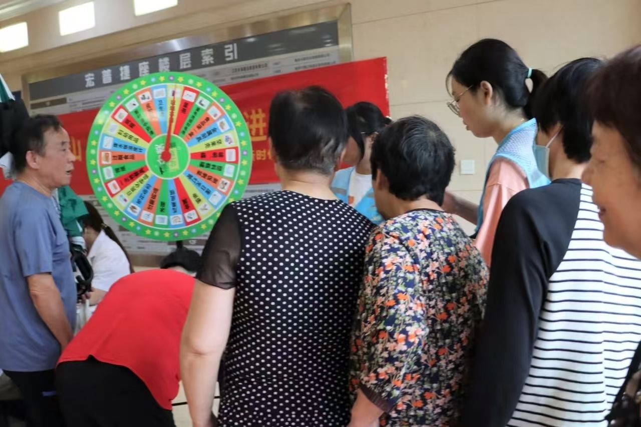 互动体验区成为活动“人气王”。社区定制的垃圾分类知识转盘,盘面标注“过期药品”“废旧电池”“剩菜剩饭”等各类垃圾,居民转动转盘后,需准确说出对应垃圾的投放类别。一位阿姨转动转盘指向“废水银温度计”,稍作思考后回答:“属于有害垃圾!”随后将模拟垃圾卡片投入对应分类桶,成功获得小礼品。这种“游戏化+知识科普”的模式,让居民在趣味互动中深化环保认知。