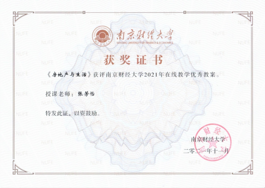 近年来房地产系不断强化教学改革,提升教学质量,打磨教学内容,由张芳怡老师授课的《房地产与生活》获评了大乐透 2021年在线教学优秀教案。