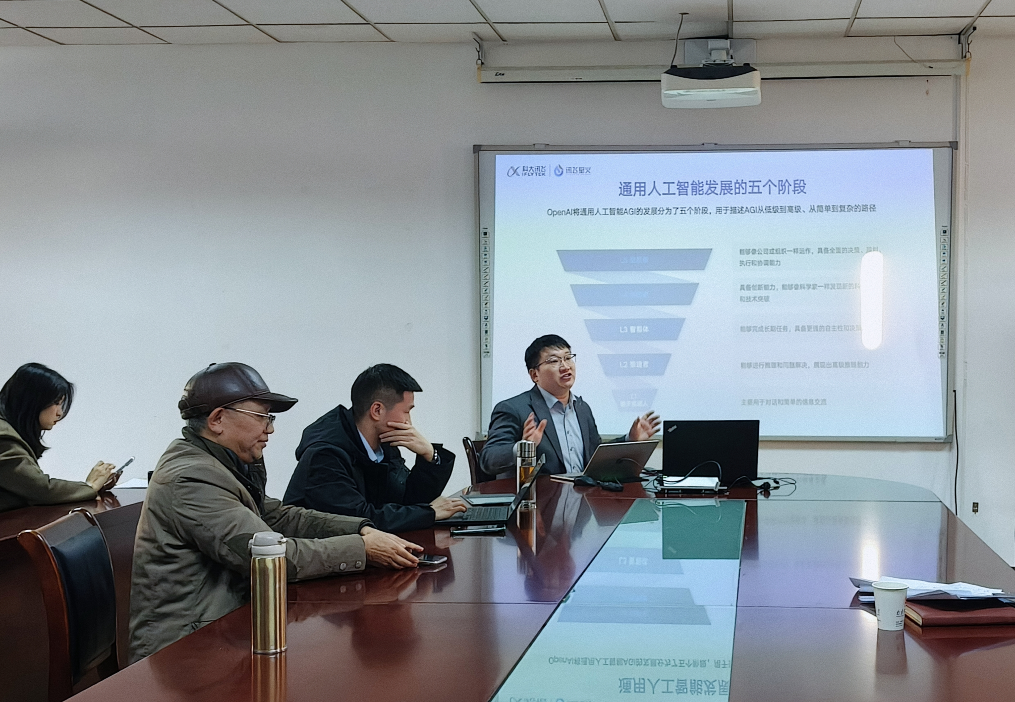 特邀科大讯飞股份有限公司高教研究院李卫东研究员,开展主题为“从‘工具’到‘同伴’ AI技术跃迁与教育范式升级”的专题讲座。本次活动由学院副院长汪栋主持,学院教师齐聚会议室,共同探讨人工智能时代高等教育的变革路径与发展机遇。
