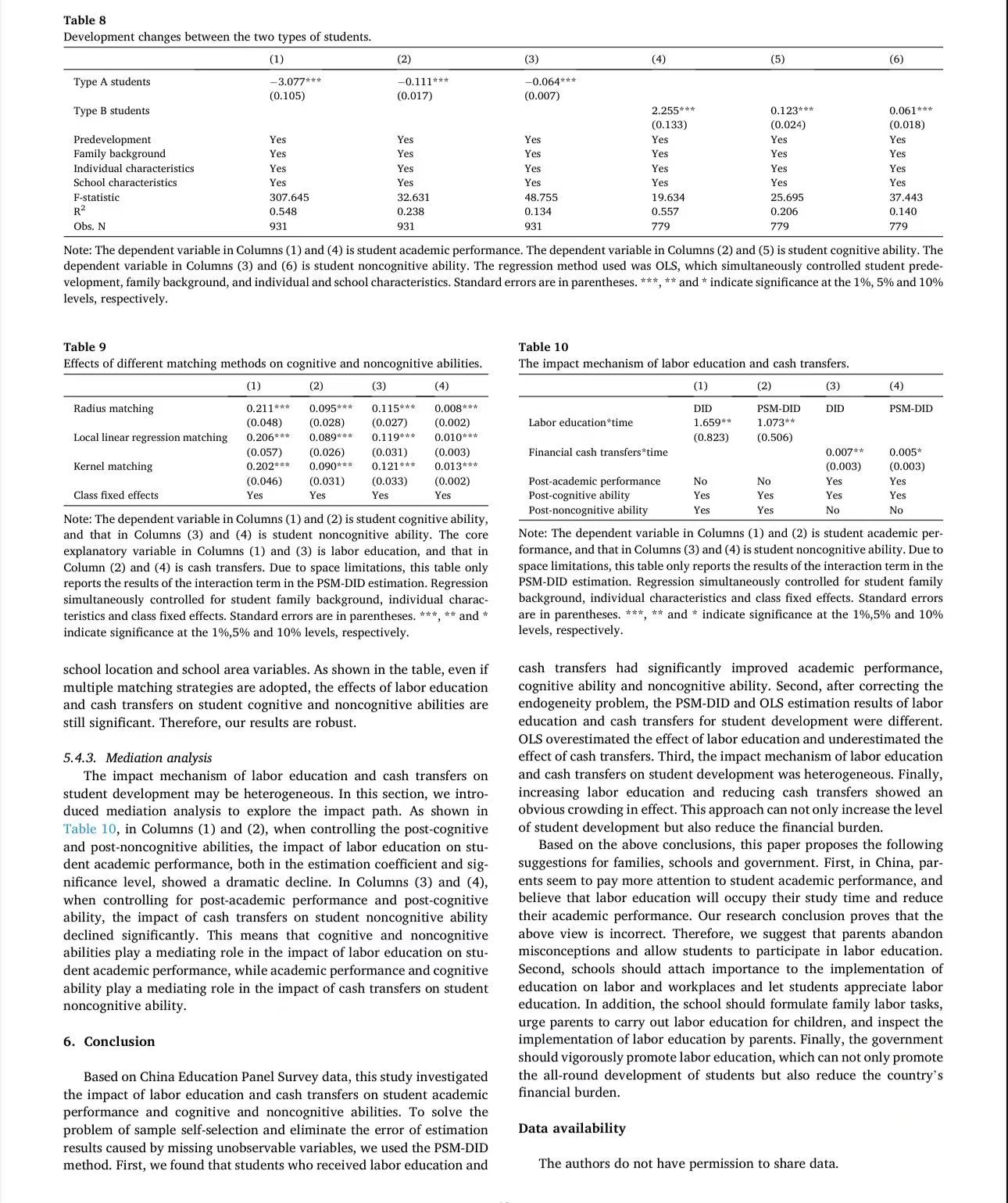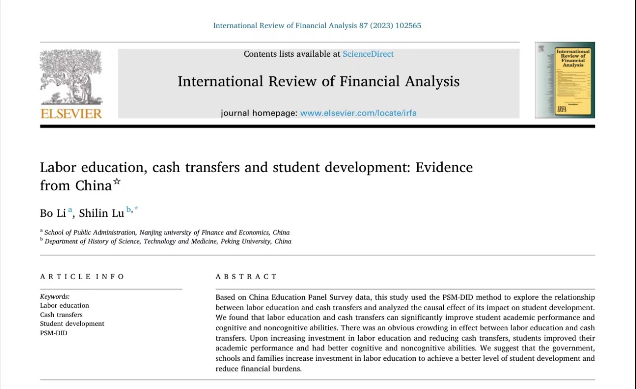 论文名称:劳动教育与教育财政现金支付对学生发展的影响(Labor education, cash transfers and student development: Evidence from China)