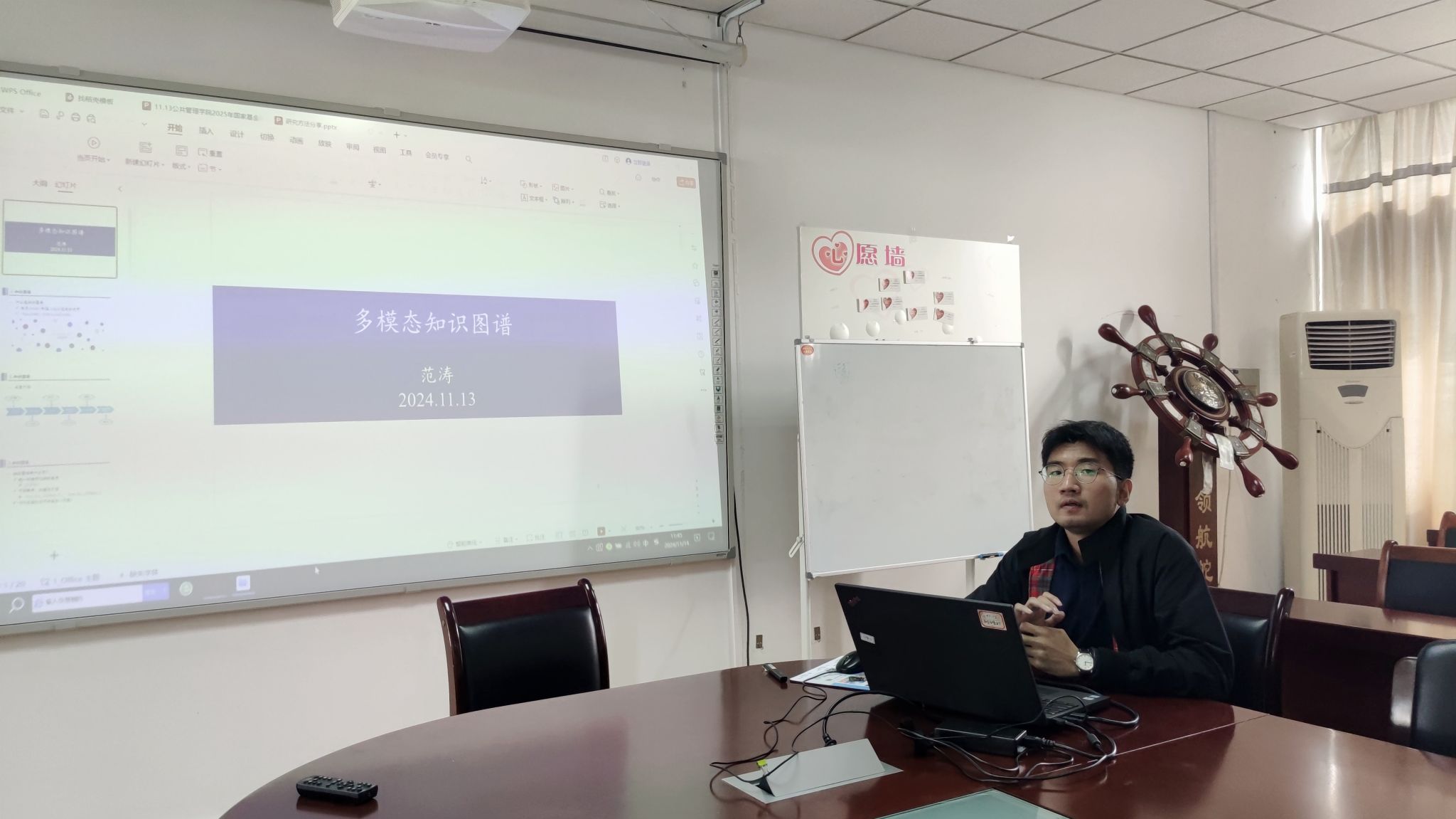 最后,范涛老师围绕多模态知识图谱构建,介绍了多模态知识图谱的发展历史及演进过程,展示了多模态知识图谱的构建路径与常用方法。他以公共管理中的政策知识图谱构建为例,叙述了图谱构建路径、实体及关系抽取流程和可视化工具;以非遗多模态知识图谱构建为例,描述了具体构建框架、其中涉及的关键问题以及提出的解决模型,并展示了交互式界面。