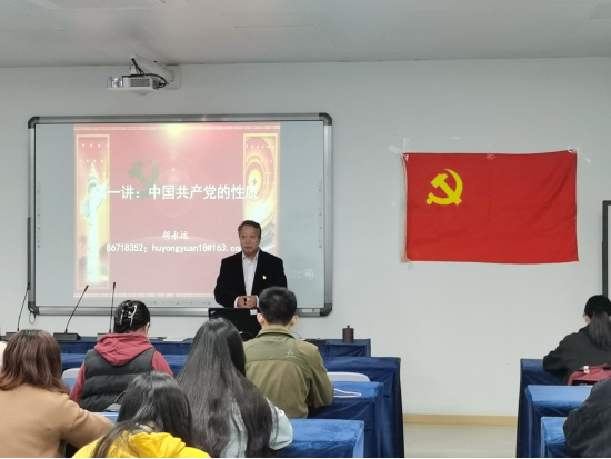 胡永远老师对本次上党课的同学提出要求:态度上端正,思想上重视,能够结合党课的学习写下心得体会。接着,胡永远老师以入党的动机为切入口,开始了党课学习的第一课:中国共产党的性质和纲领。