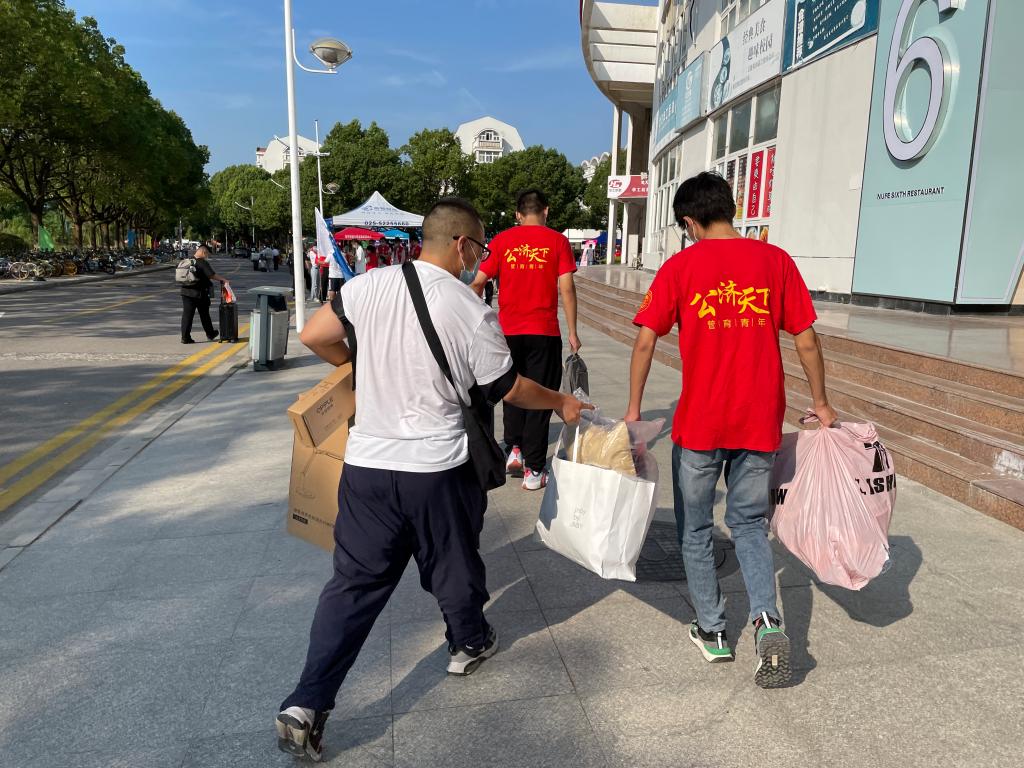 其中,来自公事管2101班的范生榆同学最先给各位新生做了表率,积极帮助同学。被问及为什么会在开学第一天就想到要做一名新生志愿者帮大家搬行李时,范生榆同学解释到因为自己家就在南京,到校很早,看到同学们需要帮忙就去帮忙了,“这也算是为人民服务的一种吧”。
