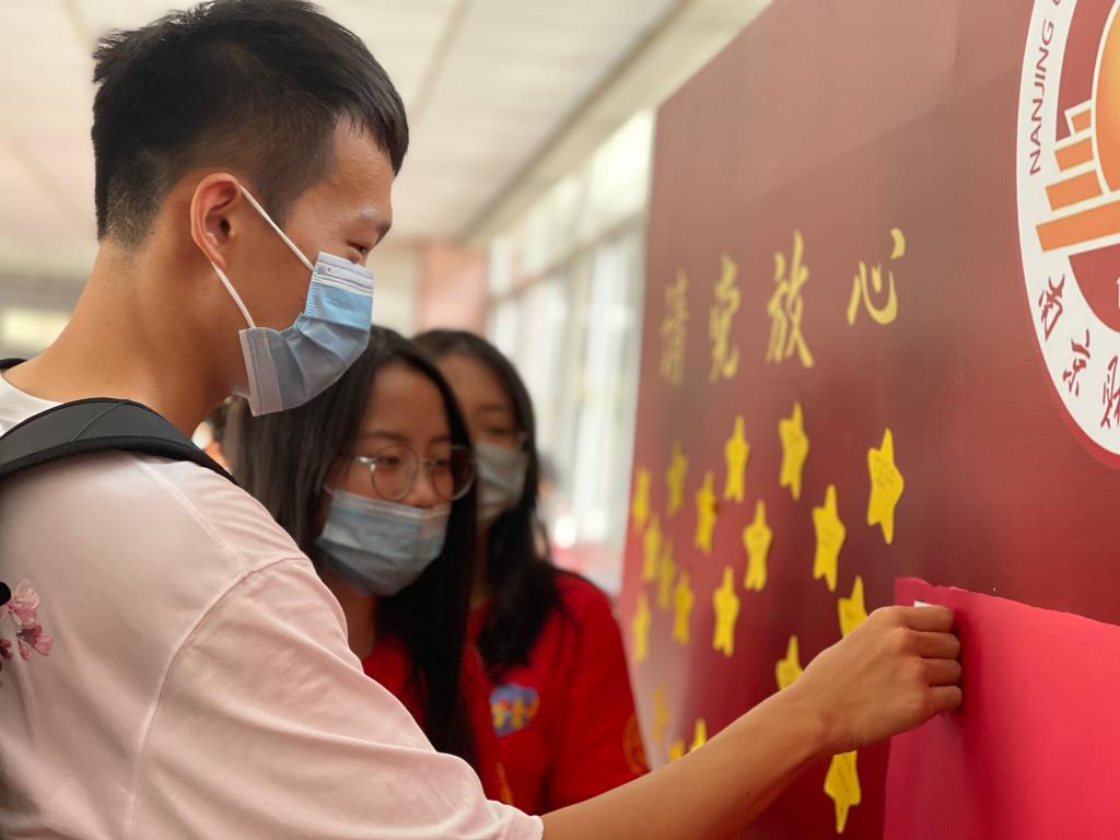 范生榆同学说:“虽然当迎新志愿者的这一天很辛苦,但自己也认识了好多同学,还有很多热心的学长学姐,对咱们的南财也有了更多的解了, 感觉特别开心!”