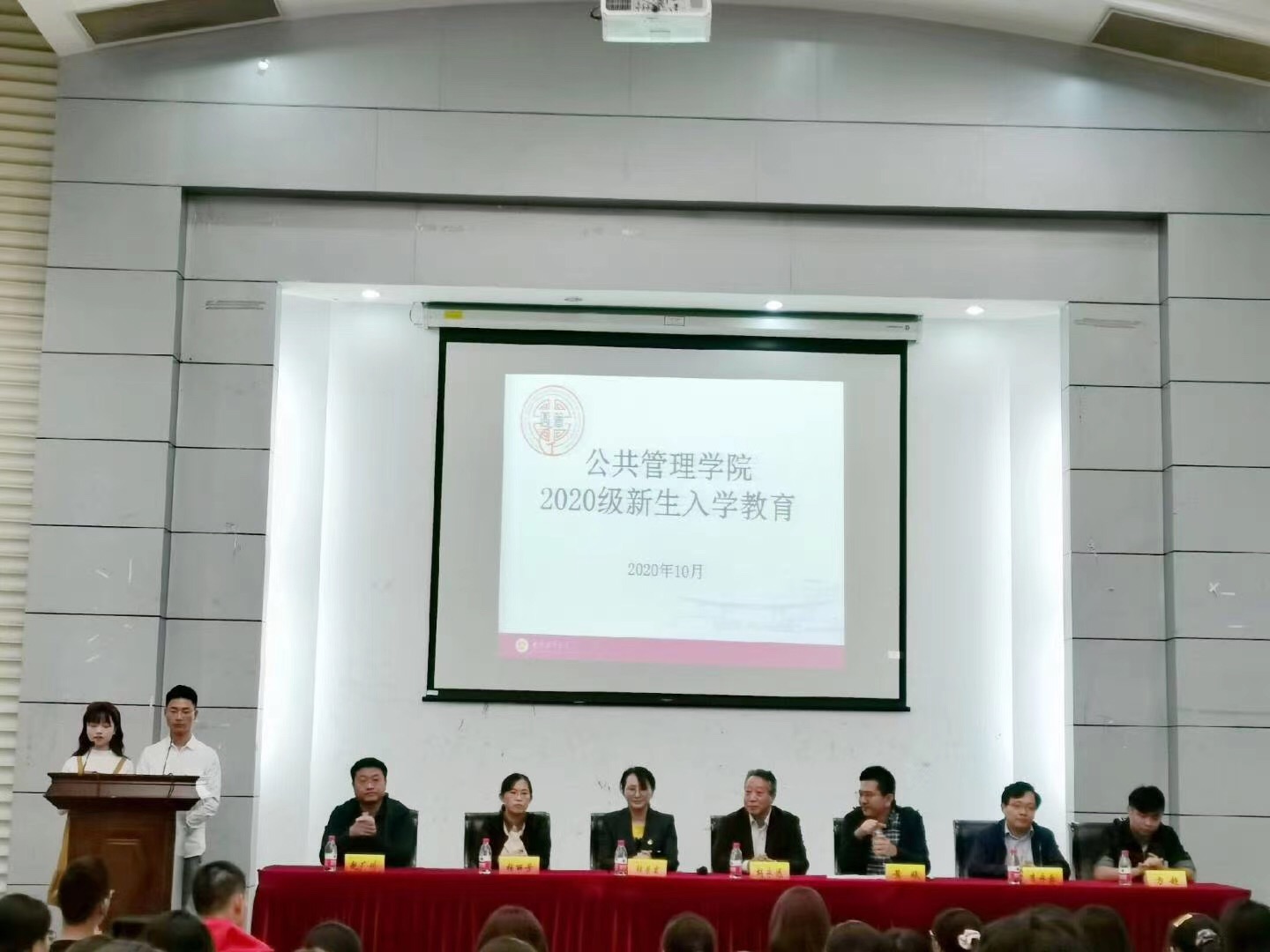 于2020年10月14日晚在德经楼二楼报告厅举行了2020级新生入学教育大会,学院党委书记胡永远、院长黄斌、学院党委副书记张荣霞、副院长李永乐、各系系主任及学工老师出席大会。