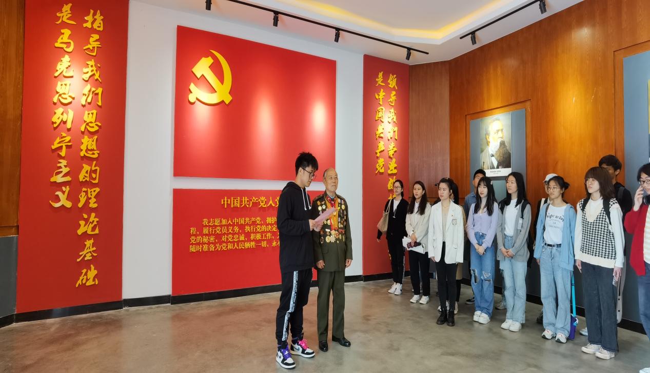 的青年学生们为传承“五·四”精神,做雷锋一样的好青年,更好地担当作为,“学党史、守初心、学雷锋、讲奉献”的红色移动课堂来到了南京大金山国防园的雷锋馆。党委副书记张荣霞老师带领学生党员和入党积极分子聆听英雄故事,学习雷锋精神,发挥模范带头作用。赵明才先生在这里为师生们上了一堂生动的课。他向师生们讲解了雷锋艰苦的童年生活,介绍了雷锋同志担任战士、驾驶员、辅导员时的感人故事,回忆了他们之间亲密的战友情谊。在他的讲述下,雷锋同志鲜活的一生浮现在同学们的眼前。老人家动情地说:“学习雷锋,就是要心中充满着大爱,即爱祖国、爱人民、爱生活、爱工作。同学们要听从习近平总书记学习党史的号召,成为一个有担当、有使命的革命接班人,要认真学习雷锋精神,知党、爱党,将雷锋精神传承下去。新时期学习雷锋精神也要与时俱进,对你们来说,学雷锋不仅是做一点好事,而应该有思有想有作有为,读书成才报效祖国。”