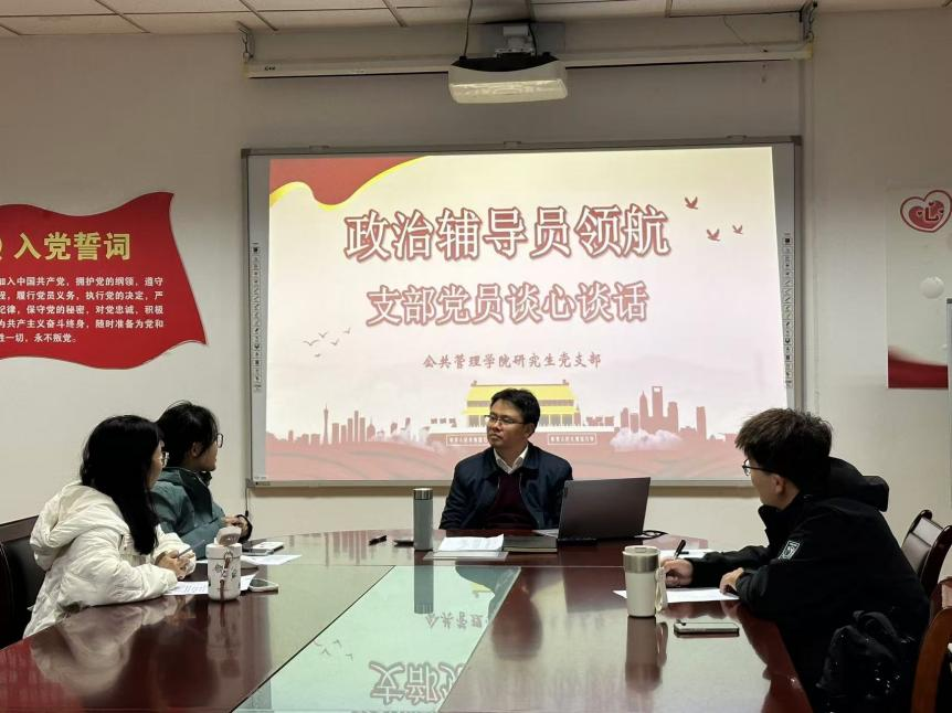 院长、研究生党支部政治辅导员黄建伟教授与学院部分研究生党员于德济楼508会议室展开了一场深入且暖心的谈心谈话活动。
