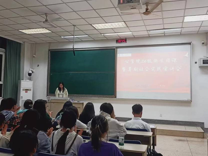 2024级新生第一次团课暨暑期社会实践宣讲会在德业楼101顺利举办。本次会议由行管2401班李想同学主持,出席的嘉宾为小风铃支教队队长劳社保2201班杨贵凯、房地产2301班王嘉、劳社保2301班朱栩瑶。大乐透