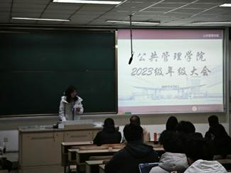 2023级本科生在博远楼105教室召开生涯发展主题班会。会议由行政管理2301班班长胡丽俊主持,辅导员李小燕及各班班主任出席指导,全体2023级本科生共同参与。